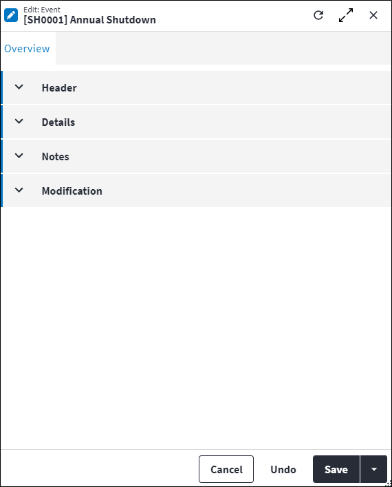 The Overview tab contains the following section(s):Header