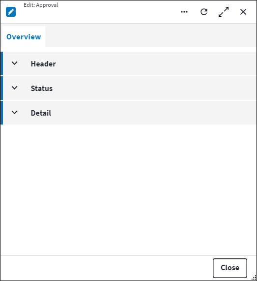 Awaiting Approval: The default starting approval workflow status. The approval has not been reviewed.ApprovedRejectedRole Count Reached: A system status that cannot be selected. If Approval Role Strategy is set toCount Basedand the specified Required Approval Count has been reached, the Status of the approvals for the remaining approval roles who did not review the approval is set toRole Count Reached.