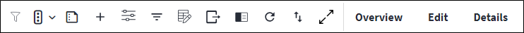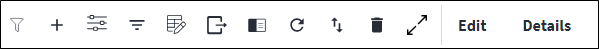 | Details | The Details button will display a list of records that you've selected in the grid. You can perform the same actions in the Details view as you would in the Edit view. However, the Details view allows you to work on batch of records. When you want to edit records but you only want to work with a certain batch. You would then select all applicable records in the grid and click Details. From the Details view, you navigate away from the dashboard and are able to edit a specific subset of records in isolation. Then, click the title of the dashboard in the breadcrumb trail to return to the dashboard. |