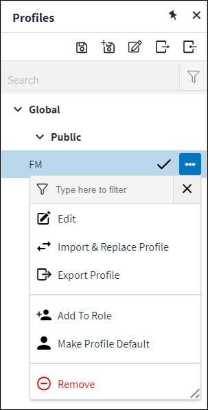 The following actions are available when selecting a specific profile in the profile tree: