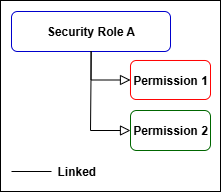 In the example below, Permission 1 and Permission 2 are linked to Security Role A to create security role permissions.